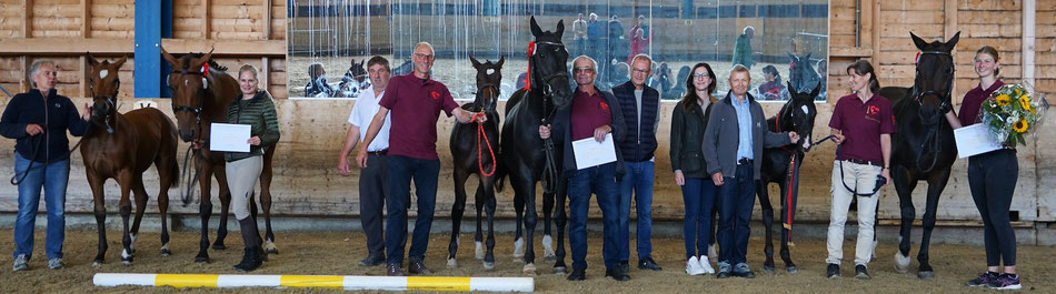 Mitte: Zweitbestplatziertes Einsiedler Hengstfohlen Unico cdm mit seiner Mutter Escondita (Klima-Linie), Züchter Alexander Widmer